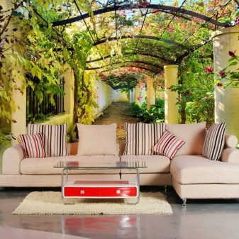 في بعض التصميمات الداخلية ، يمكنك العثور على لوحات قماشية ثلاثية الأبعاد تصور المتاحف والقلاع القديمة وحتى المعارض الفنية. يشعر عشاق البيئة الهادئة والدافئة بالرضا في مثل هذا الجو. يمكن وضع هذه الخلفيات في تصميم داخلي كلاسيكي..