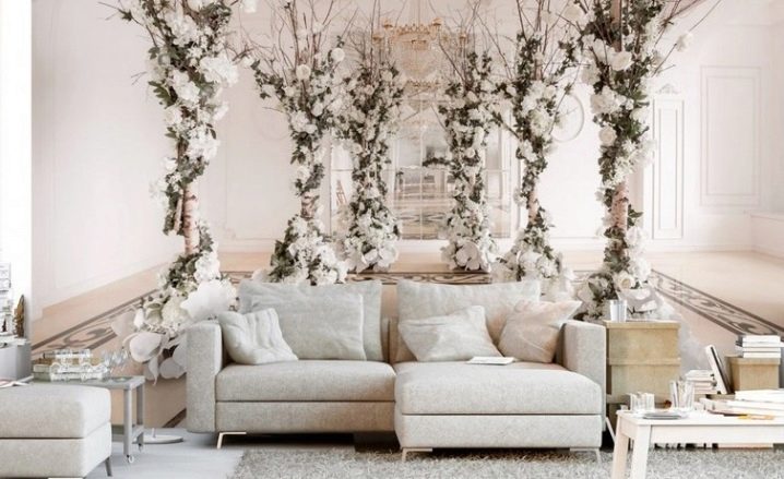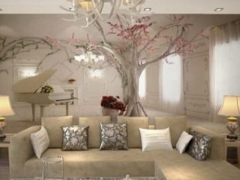 تحظى الزهور الزاهية والفراشات والزخارف الأخرى بشعبية. ستساعدك هذه الخلفية في غرفة المعيشة ، جنبًا إلى جنب مع الوسائد الناعمة والكراسي الجميلة والديكور الفضي ، في الحصول على جو رومانسي يمكنك أن تحلم به.