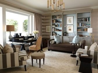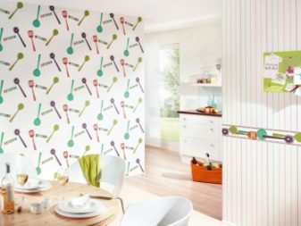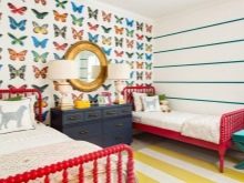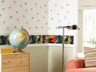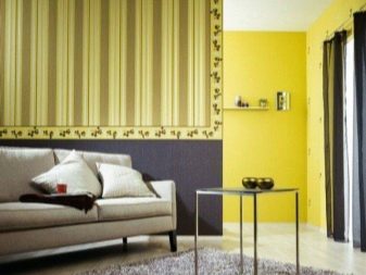 في الوقت نفسه ، يتم الجمع بين الخطوط العادية والمتعددة الألوان جيدًا ، وجيران ورق الحائط ذو الأنماط المتشابهة في المظهر أو الأشكال الهندسية التي تكمل بعضها البعض ، على سبيل المثال ، في البازلاء أو مع خطوط.