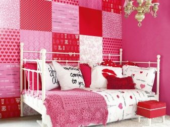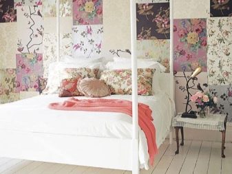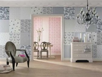بالاعتماد على طريقة الترقيع ، عند تزيين الغرفة ، يمكنك استخدام إدخالات على الجدران. هذه أجزاء من الألواح ذات أنماط مثيرة للاهتمام وأخرى أحادية اللون. تبدو الإضافات المصنوعة من مادة كثيفة ذات ملمس واضح أكثر فائدة. لإضافة قطع صغيرة متناقضة ، عادة قم أولاً بتزيين السطح بورق الجدران باللون الأساسي, عادة ما تكون ناعمة وبنبرة واحدة. ثم يتم لصق الإدخالات في الأعلى.