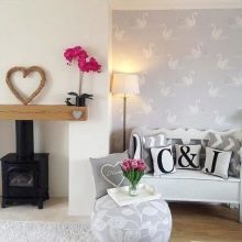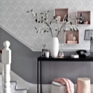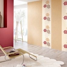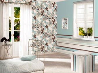 - يمكن أن تشكل أنماط الأزهار والأنماط المزخرفة مزيجًا مثيرًا للاهتمام. تبدو أنيقة جنبًا إلى جنب مع ورق حائط عادي. يجب التأكيد على الأنماط الساطعة بظلال الباستيل. إذا لم تخفف سطوع ألوان وأنماط بعض الخلفيات بظلال هادئة للآخرين ، فهناك خطر كبير في الحصول على صورة خرقاء لا طعم لها ستمل سريعًا.
