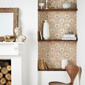 - ورق جدران. جيد لمرونتها. بفضل هذه الخاصية ، يمكن لصقها بسهولة حتى على الأماكن غير المريحة والتي يصعب الوصول إليها في الغرفة..
