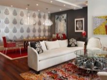 - إذا كنا نتحدث عن زخرفة غرفة مثل القاعة ، فمن الأفضل ألا تبخل بشراء ورق حائط باهظ الثمن. يجب أن تكون هذه مواد عالية الجودة ذات ملمس غني. بالنسبة للقاعة الصغيرة ، يمكنك استخدام الألوان الفاتحة ؛ في غرفة المعيشة الفسيحة ، لا تحرم نفسك من متعة اللعب بالألوان والأنسجة والأنماط.