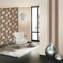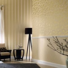 سيبدو رائعًا أيضًا مزيج من الألواح المخططة في الأسفل وأنماط الأزهار – أعلاه. من الضروري أن تحدد بالضبط على أي مستوى تنضم إليهم من أجل الحصول على التأثير الذي تسعى إليه بالضبط. من أجل تشغيل خط التوصيل بالارتفاع الصحيح ، يوصي الخبراء بالتركيز على مستوى الأثاث في الغرفة. أيضًا ، عند الجمع بين ورق الحائط ، يجب وضع الخلفيات الأكثر سمكًا والأكثر نسيجًا في الأسفل ، حيث يكون الطلاء هنا أسهل في التلف ، والطلاء اللامع والرقيق – في الجزء العلوي من الجدار.