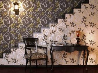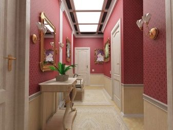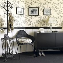 بمساعدة ورق الحائط باستخدام طريقة اللصق هذه ، يمكنك تحقيق انطباع بوجود لوحة الكسوة. تبدو مثيرة للاهتمام بشكل خاص في الممر..