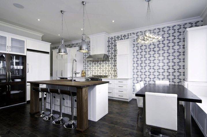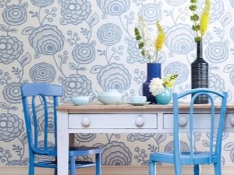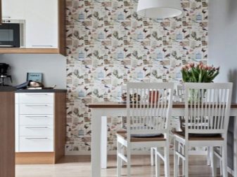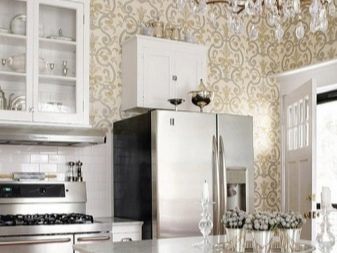 أفضل الخيارات هي ورق الجدران ، والفينيل ، والألياف الزجاجية. الأغطية الورقية غير مناسبة للمطبخ.