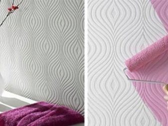 - منقوش. يمكن أن تكون الصورة مقعرة أو محدبة. النمط يعطي أناقة ورق الحائط ، والأناقة الخاصة. تنقسم هذه الطلاءات إلى منقوشة ومموجة..