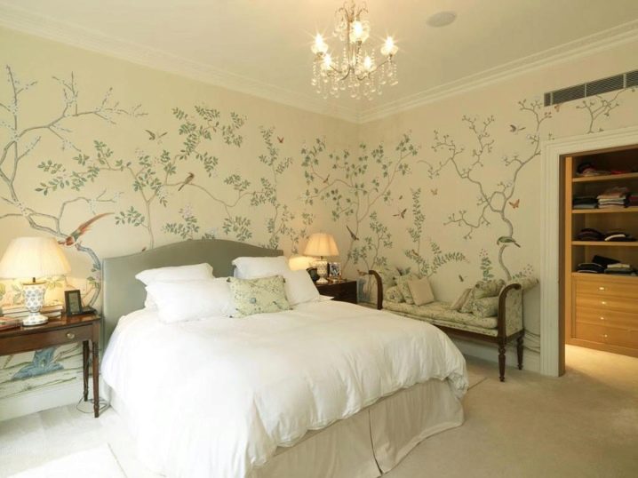 غرفة النوم هي غرفة يقضي فيها الناس الكثير من الوقت. يجب أن تكون مواد التشطيب آمنة تمامًا للبشر. بالنسبة لمثل هذه الغرفة ، من الأفضل اختيار الطلاءات المصنوعة من المنسوجات أو الأكريليك أو الورق أو الألياف الزجاجية أو مواد الطلاء. ستعمل أيضًا الرغوة أو الفينيل المسطح ، لكن هذا الخيار غير مرغوب فيه..