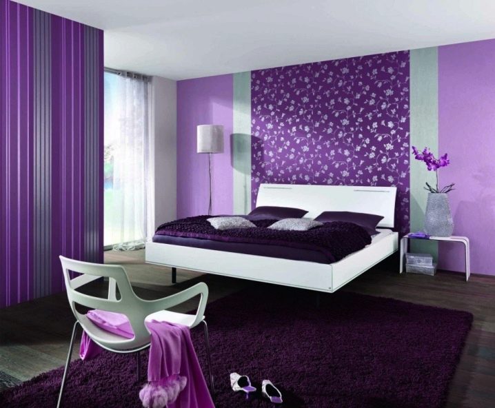 أرجواني هو من أكثر الألوان جاذبية. في غرفة بها ورق حائط من هذا القبيل ، يتم إنشاء جو من الغموض..