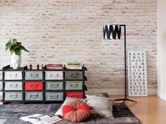 - يمكنك الجمع بين ورق الحائط الخفيف الذي يشبه الحجر مع الظلال الداكنة. تبدو الخلفية البيضاء لطيفة للغاية تحت الطوب الزخرفي. تجدر الإشارة إلى أن أعمال البناء بالطوب وتقليدها تحظى بشعبية كبيرة في تصميم الديكورات الداخلية الحديثة..