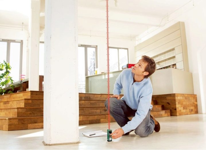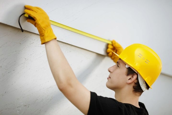 يتم إجراء القياسات من السقف إلى مستوى الأرض ، دون إعادة بدل القاعدة الأرضية. نظرًا لأن الجدران في معظم الحالات بها انحناء ، فيجب تنفيذها في عدة أقسام ، واختيار أعلى مؤشر لوضع العلامات.