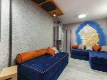 ومع ذلك ، يجدر النظر في أنه سيتعين قطعها أثناء عملية اللصق: يتم لصق ورق الحائط في الزوايا بتداخل مع تداخل طفيف. إذا كان الانتقال أكثر من 2 سم ، فسيكون ملحوظًا ، ويبدو بصريًا قبيحًا. علاوة على ذلك ، مع منظور مكسور ، سيكون من الصعب قياس طول اللوحات المستعرضة ، مع مراعاة النتوءات أو المستويات المختلفة ، مقارنةً بإجراء القياسات الرأسية التقليدية. لكي لا تعاني في هذا الموقف ، يمكنك التقاط ورق حائط مزدوج لإنهاء الحواف ، ولصقها على ميزات تصميم الغرفة بالطريقة المعتادة (عموديًا).