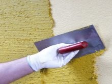 تنتشر ورق الحائط السائل على الحائط بملعقة ، يتم لفها بأسطوانة بناء ، ورشها بمسدس خاص. في كل حالة ، يختلف استهلاك المواد ، لأن سماكة الطبقة المواجهة نفسها مختلفة أيضًا ، والتي يمكن أن تتراوح من 2 إلى 6 مم.
