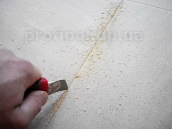 لتنظيف التجاويف من الكتلة الأسمنتية باستخدام أداة كهربائية ، من الضروري سحب جزء العمل على طول المفاصل ، مع الحفاظ على قوة ضغط موحدة.