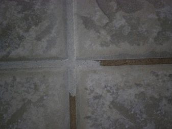 - ظهرت تشققات بين الوحدات المبلطة ، ينهار المحلول أو يسقط إلى قطع ، في الأماكن التي يمكن للعين المجردة أن ترى فيها الفراغات..