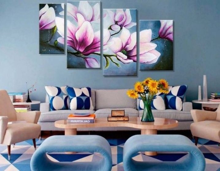 يمكنك ابتكار أي شيء يسعد عينيك. يمكنك إنشاء لوحة تخبر الضيوف عن هواية المضيف بشكل أفضل من الكلمات. يمكن أن تكون اللوحة مركبة – في الواقع ، هناك العديد من اللوحات الصغيرة التي تشكل تركيبة واحدة. صورة واحدة “مفككة” إلى عدة أجزاء تبدو مثيرة للاهتمام.