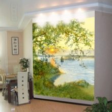 اللوحة عبارة عن مساحة مزينة بإطارات على الحائط تبرز من الخلفية العامة. متعدد الاستخدامات (وفي حالة ورق الحائط ، ميزانية للغاية) ، ولكن في نفس الوقت عنصر تصميم عصري وشائع. إذا كنت شخصًا مبدعًا ، فستنجح. يمكنك إنشاء لوحة خلفية غير عادية بنفسك.