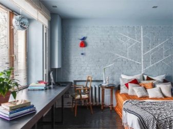 لا ينطبق هذا فقط على الألوان ، ولكن أيضًا على الأنسجة المختلفة – يبدو هذا المزيج دائمًا أصليًا ومثيرًا للاهتمام ، مما يسمح لك بإبراز لهجة أو زيادة حجم الغرفة أو تقليله بصريًا..