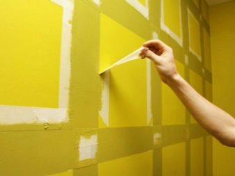 عند استخدام طلاء بألوان مختلفة للتلوين المجعد ، لا يمكنك الاستغناء عن وضع علامة بشريط لاصق خاص – ثم “الزحف” العرضي إلى ما وراء ما هو ضروري سيبقى عليه ، وليس على الجدران. لا تحتاج إلى تقشير مثل هذا الشريط اللاصق إلا بعد أن يجف الطلاء تمامًا ، وإلا فلا يمكن تجنب انتهاكات الكنتور.