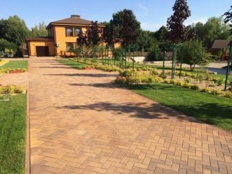 هناك طلب كبير أيضًا على ألواح الرصف باللون البيج. تبدو هذه المواد رائعة ليس فقط في المنزل ، ولكن أيضًا خارجه. باستخدامه ، يمكنك وضع مسار عملي وأنيق في الفناء الخلفي الخاص بك. لمزيد من التأثير الجمالي ، استخدم المواد بلونين ، مثل البيج الفاتح والبني الداكن.
