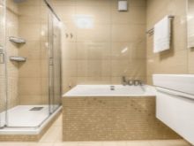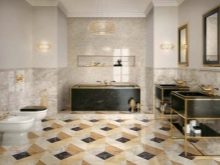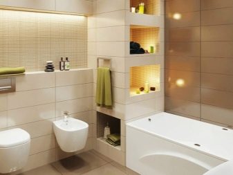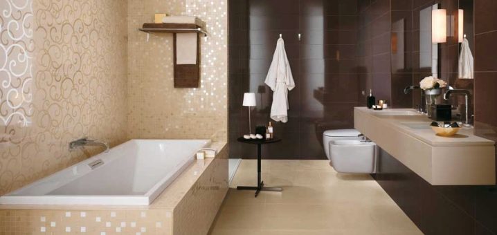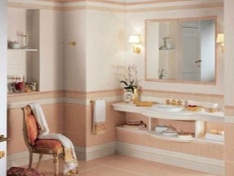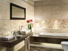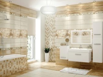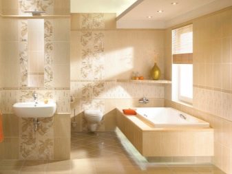 مزيج من البلاط من ظلال مختلفة يبدو مذهلاً. يجب أن يكون تشبع الظلال المستخدمة لتزيين الأرضية والجدران مختلفًا. يسمح لك عدد كبير من درجات اللون البيج باختيار أفضل مجموعة.