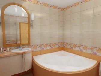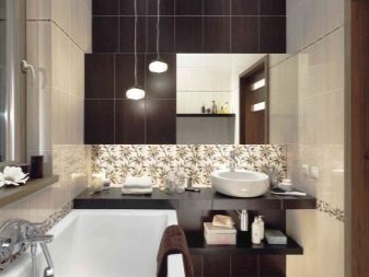 لتزيين هذا الجزء من المنزل ، لا يتم استخدام بلاط الأرضيات فحسب ، بل يتم استخدام بلاط الجدران أيضًا. يمكن دمجه مع ألوان الأرضية أو التباين.