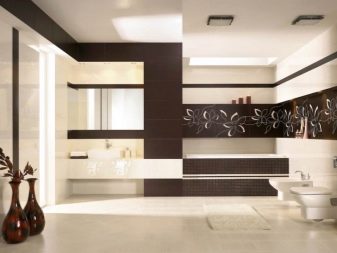 - أسود. اللون الكلاسيكي الثاني أسود. يتم دمجه مع البيج ، عندما يكون من الضروري إنشاء تصميم داخلي صارم ومقتضب وفي نفس الوقت – مصقول ومتطور. لمزيد من التعبير ، يوصي المصممون باستخدام البلاط المصقول. إذا سمح حجم الغرفة ، استكمل المفهوم بفسيفساء صغيرة.