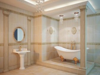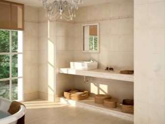 دعونا نلخص المقال بأمثلة توضيحية لاستخدام البلاط البيج في الديكور. بلاط بيج فاتح في الحمام الكلاسيكي. تُظهر الصورة أن الديكور اتضح أنه ناعم وحساس ومهدئ. الغرفة مليئة بالضوء.