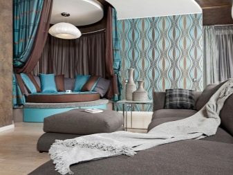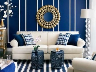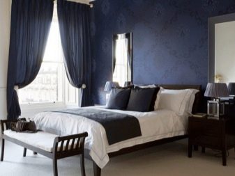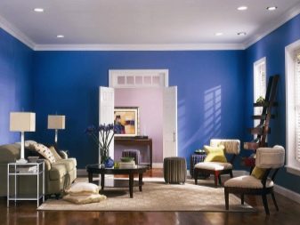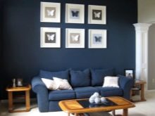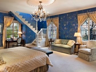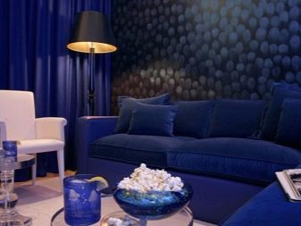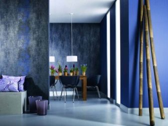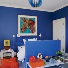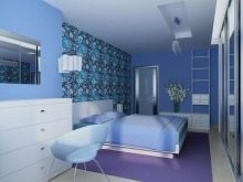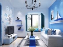 - في الغرف الفسيحة ، يمكنك استخدام نغمات زرقاء داكنة أو أرجوانية قليلاً. هنا ، لن تكون الخلفيات الزرقاء الساطعة في غير مكانها ، بل إنها ستقلل بصريًا من مساحة الغرفة..