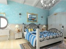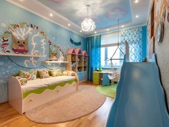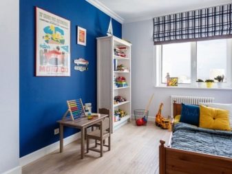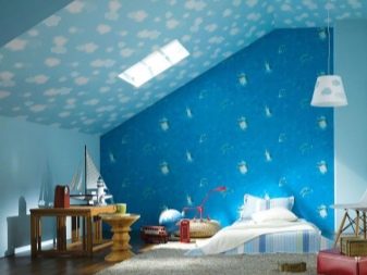 - جو رائع. توفر الخلفية الزرقاء مساحة كبيرة للخيال. إذا كان سطح ورق الحائط مزينًا بأوراق خضراء ، فيمكنك الانغماس في جو الغابة ، وإذا كان هناك تناثر من البريق المتلألئ تحت أشعة الضوء على السطح غير الملحوم ، فستحصل على ليلة جميلة السماء مع النجوم.