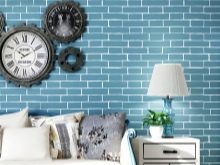 - تقليد المواد الطبيعية. في كثير من الأحيان ، يتم أيضًا اختيار العديد من الخطوط الملونة ذات الأنماط المقلدة لبعض المواد الطبيعية للشركة إلى القاعدة الزرقاء. غالبًا ما تكون هذه مواد مثل الخشب أو الطوب. إذا كانت ثلاثة جدران زرقاء ، والرابع منمق على شكل ألواح ، فسيكون التصميم الداخلي أنيقًا وعصريًا..