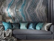 أما بالنسبة للخلفية السائلة ، فهذا هو الخيار الأغلى ثمناً ، والذي يشبه في الواقع الجص الملون ، ويسمح لك بتسوية الجدران وإخفاء جميع أنواع العيوب..
