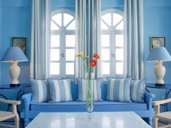 هناك أيضًا ألوان مختلفة ، أو بالأحرى ظلال من اللون الأزرق يمكن استخدامها لتزيين الغرفة: