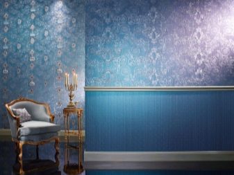 - مجموعات الألوان تستحق اهتماما خاصا. يجمع اللون الأزرق جيدًا مع العديد من الظلال. لذلك ، على سبيل المثال ، تبدو الخلفيات ذات اللون الأزرق والأبيض والأزرق والأصفر والأزرق البيج جيدة. دائمًا ما يكون الجمع بين اللون الأزرق الفاتح مفيدًا وعمليًا. هذا ينطبق بشكل خاص على الغرف ذات النمط الكلاسيكي أو النمط الكلاسيكي..