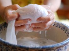 - قم بإعداد ملعقة حادة ، فقد تحتاج أيضًا إلى أسطوانة مسننة (لتثقيب الشفرة القديمة وتغلغل الرطوبة بشكل أفضل) ومحلول ماء وصابون.