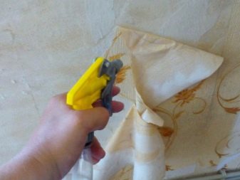بالنسبة للطرق المذكورة أعلاه ، فهي ذات ميزانية كبيرة ، ولكنها مع ذلك تتطلب بعض المهارة وقادرة على التعامل بشكل جيد فقط مع الغراء ، وأساسه هو الماء. إذا قمت بلصق الجدران بأداة تعتمد على PVA ، فأنت بحاجة إلى اللجوء إلى سوائل خاصة تُباع في متاجر الأجهزة والأجهزة والمصممة خصيصًا لتقشير ورق الحائط القديم. بعد التحضير الأولي ، يتم تطبيق محلول الإزالة على القماش.