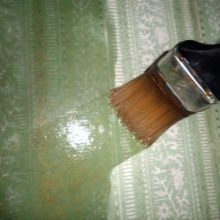 - في الأماكن التي يتم فيها لصق القماش بإحكام ، امش باستخدام بكرة ، ثم رطب المنطقة بإسفنجة رطبة..