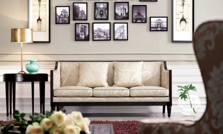 على خلفية الجدار بزهرة أنيقة ، سيبرز إطار الصورة المزخرف غير المعتاد أو ساعة الوقواق بشكل مثالي. من الأفضل ترك الزخارف الكلاسيكية في الوقت الحالي ، عندما يكون من الضروري إجراء إصلاحات في القاعة أو في المطبخ..