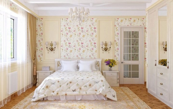 بالمناسبة ، تبدو الخلفية ذات النمط الصغير أنيقة في غرف النوم ، ويوصى بهذا الخيار بشكل خاص لمحبي الأجواء القديمة في بروفانس.