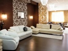 من الأفضل استخدام خلفية منقوشة فقط على أحد الجدران, حتى لو كان لديك غرفة كبيرة. هذا سيجعل من الممكن تحديد المساحة. لذلك ، على سبيل المثال ، بجانب هذا الجدار المزخرف ، يمكنك وضع أريكة أو كراسي بذراعين مع طاولات. نتيجة لذلك ، لن تقوم فقط بتزيين الغرفة ، ولكن أيضًا ستخلق مكانًا مريحًا للاسترخاء..