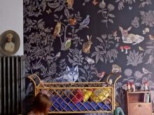 في غرفة نوم الأطفال ، لا يمكنك استخدام المطبوعات الزاهية مع الحيوانات والشخصيات الخيالية فقط. تبدو الخلفيات الهادئة المزينة بأحرف واحدة جيدة أيضًا في هذه الغرفة. قد يبدو لك أن هذا هو شفقة زائدة عن الحاجة ، ولكن في الواقع ، فإن اللوحات البسيطة ذات الأنماط المتدفقة المتكررة لها تأثير مهدئ على عقل الطفل..