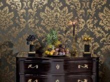 - تتلاءم الخلفيات ذات هذه الأنماط بشكل جيد مع أغطية الجدران النسيجية والألواح الخشبية والأسطح الملصقة البسيطة. في كل حالة ، تبدو اللمسة الجميلة على شكل شريط مزخرف أنيقة ومكلفة قدر الإمكان ؛
