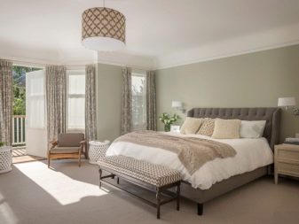 - في غرفة النوم يمكنك اختيار خلفية ناعمة ، ويسمح أيضًا بالملمس الصغير المزخرف. للتلوين ، من الأفضل اختيار ألوان الباستيل ، على الرغم من أن الظلال الداكنة يمكن أن تبدو جميلة إذا تم إنشاء مجموعة لائقة من الألوان.