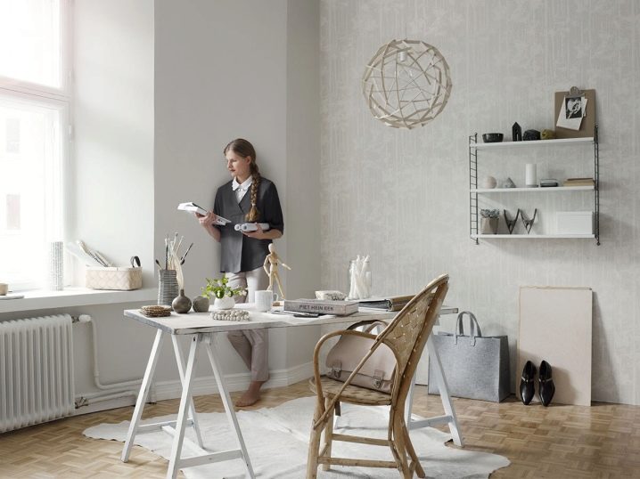 - للتسجيل مساحة المكتب غالبًا ما يتم اختيار الخلفيات التي تقلد المواد الطبيعية. في هذه الحالة ، يتم استبعاد الظلال الساطعة والداكنة ، على سبيل المثال ، لن تخلق الجدران الحمراء جو العمل الضروري.