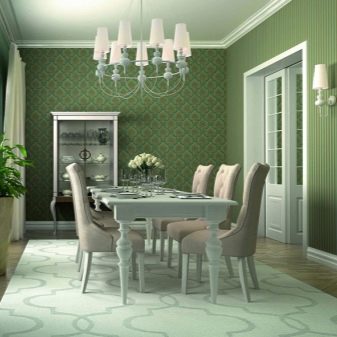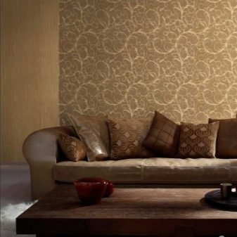 في المناطق الداخلية من الشقق الحديثة ، غالبًا ما تستخدم التقسيم بورق الجدران. لذلك ، يتم استخدام النماذج مع نفس الملمس والنمط ، ولكن بألوان مختلفة. بمساعدة ورق جدران الفينيل اللامع على القماش غير المنسوج ، يمكنك إبراز أحد الجدران في الغرفة وبالتالي تنويع المساحة الداخلية..