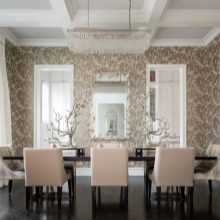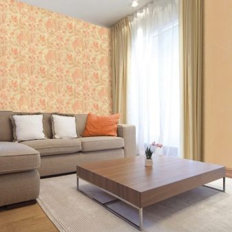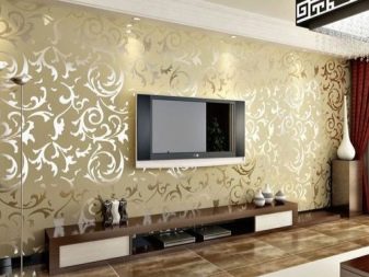 تبدو الطلاءات اللامعة رائعة في الداخل ، كلا النموذجين بنمط وأخرى أحادية اللون. في غرفة المعيشة ، يوصي المصممون بلصق ورق الحائط بطبعات مجردة. ولكن إذا كانت الغرفة مزينة بأسلوب حديث ، يمكنك إعطاء الأفضلية للنماذج ذات النمط الهندسي. وللحصول على المزيد من التصميمات الداخلية الكلاسيكية ، فإن الطرز ذات الطباعة الحريرية والصور ذات الألوان الكبيرة مثالية..