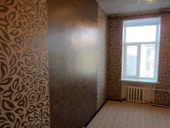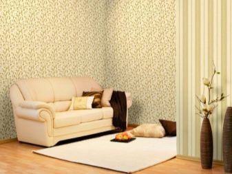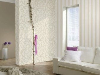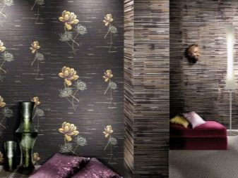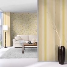 في المناطق الداخلية من الشقق الحديثة ، غالبًا ما تستخدم التقسيم بورق الجدران. لذلك ، يتم استخدام النماذج مع نفس الملمس والنمط ، ولكن بألوان مختلفة. بمساعدة ورق جدران الفينيل اللامع على القماش غير المنسوج ، يمكنك إبراز أحد الجدران في الغرفة وبالتالي تنويع المساحة الداخلية..