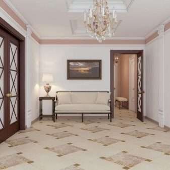 - سوف يكمل البلاط البيج الديكورات الداخلية بأسلوب “الآرت نوفو” أو “آرت ديكو”. بالمناسبة ، تحول الفنانون الداخليون في عصر الفن الحديث أكثر من مرة إلى التبليط ، وزينوه بزخارف باللون البيج والبني..