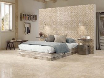 اتجاهات جديدة في الموضة الحديثة – البلاط الذي يقلد المنسوجات والمنسوجات وحتى الملمس المخملي. بالنسبة للمطبخ أو الحمام ، فإن هذا التصميم غير مناسب ، ولكنه مناسب تمامًا لغرفة النوم.
