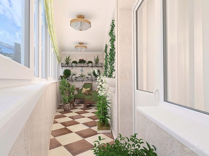 لوجيا جميل ومريح هو حلم أي مالك. لجعل الشرفة تبدو وكأنها امتداد للشقة وتصبح مكانًا للاسترخاء ، ضع في اعتبارك إمكانية استخدام أرضية دافئة من البلاط في هذه الغرفة الصغيرة ، وضع كرسي بذراعين مريح ووضع ترتيبات الزهور. سيكون من الجيد الاستماع إلى الموسيقى والقراءة وممارسة بعض الهوايات الممتعة هنا..